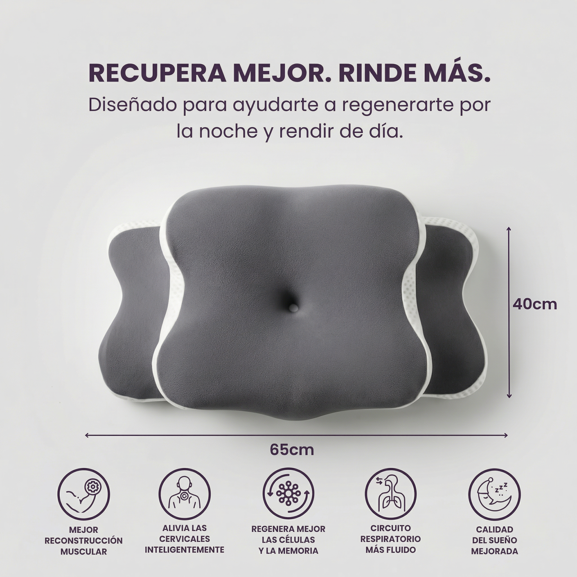 Su diseño anatómico ayuda a mantener una alineación cervical más natural durante la noche, favoreciendo un descanso más equilibrado y confortable.